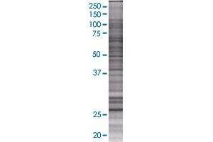 Product Quality tested by: Transient overexpression cell lysate was tested with Anti-TERF2 antibody by Western Blots.