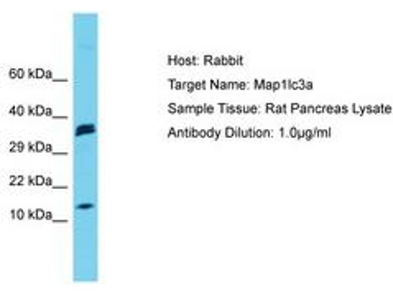 MAP1LC3A Reaktivität: Human, Maus, Ratte, Zebrafisch (Danio rerio), Meerschweinchen, Pferd, Hund, Affe, Schwein, Fledermaus WB Wirt: Kaninchen Polyclonal unconjugated