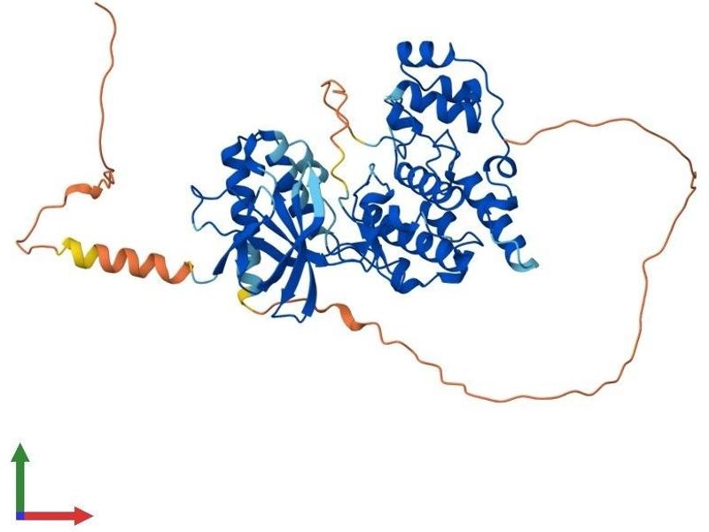 The protein encoded by this gene is a member of the MAP kinase family. MAP kinases act as an integration point for multiple biochemical signals, and are involved in a wide variety of cellular processes such as proliferation, differentiation, transcription regulation and development. This protein is a neuronal-specific form of c-Jun N-terminal kinases (JNKs). Through its phosphorylation and nuclear localization, this kinase plays regulatory roles in the signaling pathways during neuronal apoptosis. Beta-arrestin 2, a receptor-regulated MAP kinase scaffold protein, is found to interact with, and stimulate the phosphorylation of this kinase by MAP kinase kinase 4 (MKK4). Cyclin-dependent kianse 5 can phosphorylate, and inhibit the activity of this kinase, which may be important in preventing neuronal apoptosis. Four alternatively spliced transcript variants encoding distinct isoforms have been reported. [provided by RefSeq, Jul 2008].