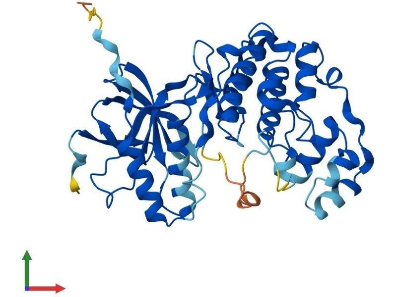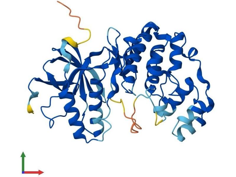 The protein encoded by this gene is a member of the MAP kinase family. MAP kinases act as an integration point for multiple biochemical signals, and are involved in a wide variety of cellular processes such as proliferation, differentiation, transcription regulation, and development. This kinase is most closely related to p38 MAP kinase, both of which can be activated by proinflammatory cytokines and environmental stress. This kinase is activated through its phosphorylation by MAP kinase kinases (MKKs), preferably by MKK6. Transcription factor ATF2/CREB2 has been shown to be a substrate of this kinase. [provided by RefSeq, Jul 2008].
