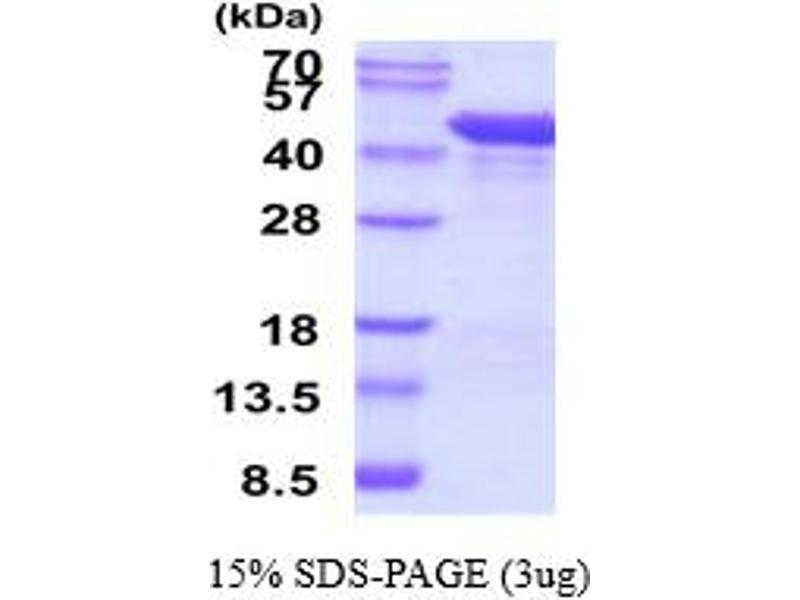 The purity of the protein is greater than 85 % as determined by SDS-PAGE and Coomassie blue staining.