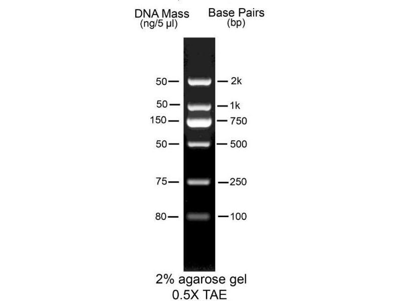 DNA ladder that range in size from 100 ~ 2,000 bp.
