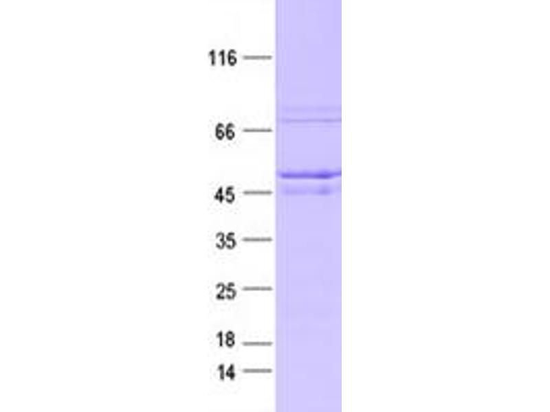 The purity of the protein is greater than 95 % as determined by SDS-PAGE and Coomassie blue staining.