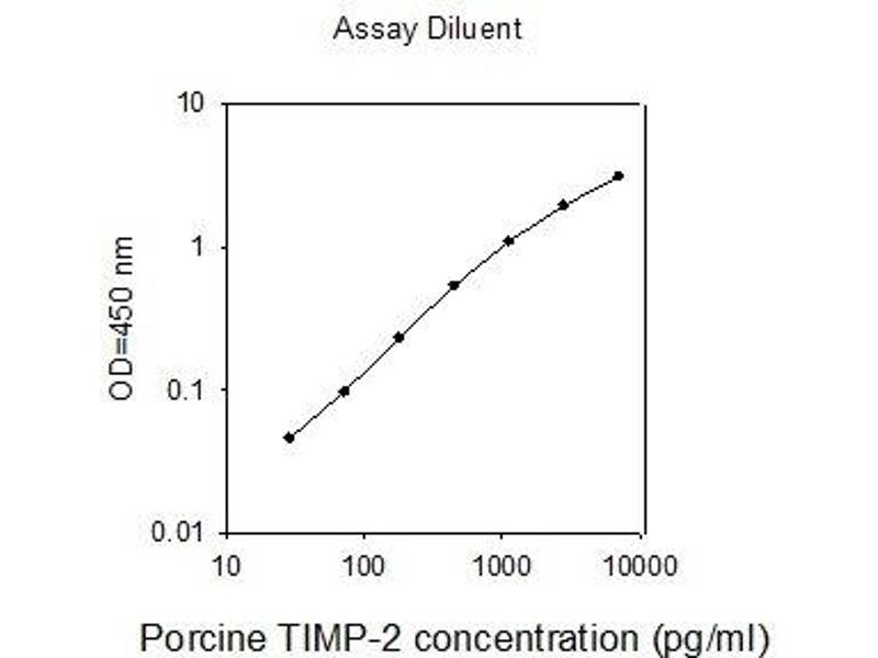 TIMP2 Reaktivität: Schwein Colorimetric Sandwich ELISA 0.15 ng/mL - 10 ng/mL Plasma, Serum, Tissue Homogenate