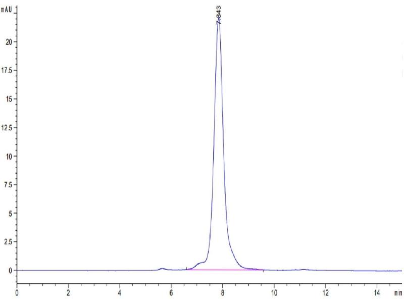 The purity of the protein is greater than 95 % as determined by SDS-PAGE and Coomassie blue staining.