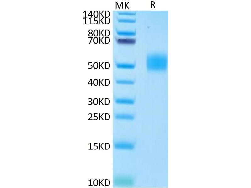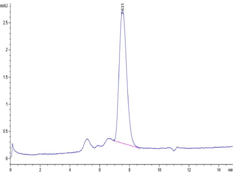 The purity of the protein is greater than 95 % as determined by SDS-PAGE and Coomassie blue staining.