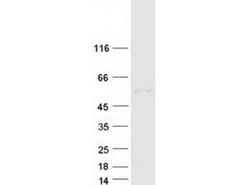 The purity of the protein is greater than 85 % as determined by SDS-PAGE and Coomassie blue staining.