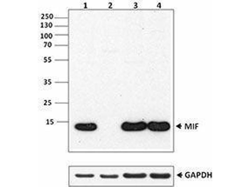 MIF Reaktivität: Human, Maus, Ratte, Affe, Rind (Kuh), Schaf, Schwein, Kaninchen, Hund, Meerschweinchen, Pferd, Hamster WB Wirt: Kaninchen Polyclonal unconjugated