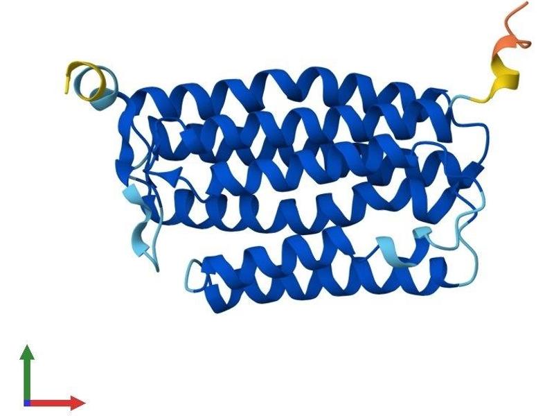 This protein is expressed by in vitro differentiated macrophages but not freshly isolated monocytes. Although sequence analysis identifies seven potential transmembrane domains, this protein has little homology to G-protein receptors and it has not been positively identified as a receptor. A suggested alternative function is that of an ion channel protein in maturing macrophages. [provided by RefSeq, Jul 2008].