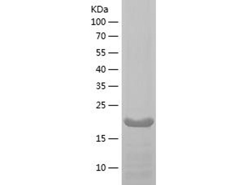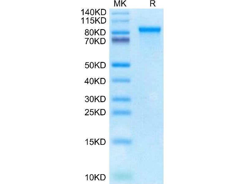 The purity of the protein is greater than 85 % as determined by SDS-PAGE and Coomassie blue staining.