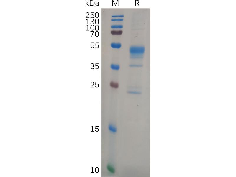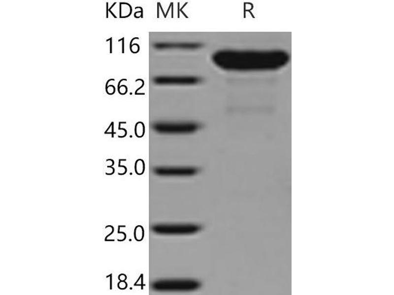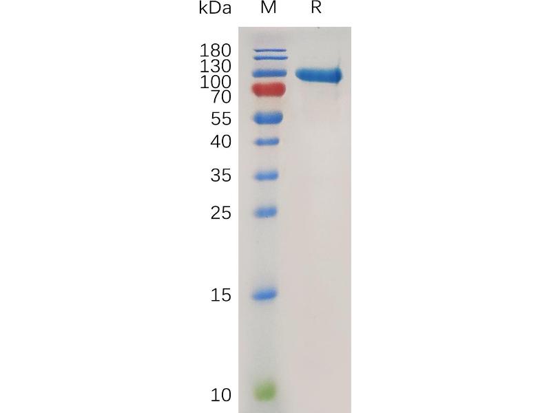 The purity of the protein is greater than 95 % as determined by SDS-PAGE and Coomassie blue staining.