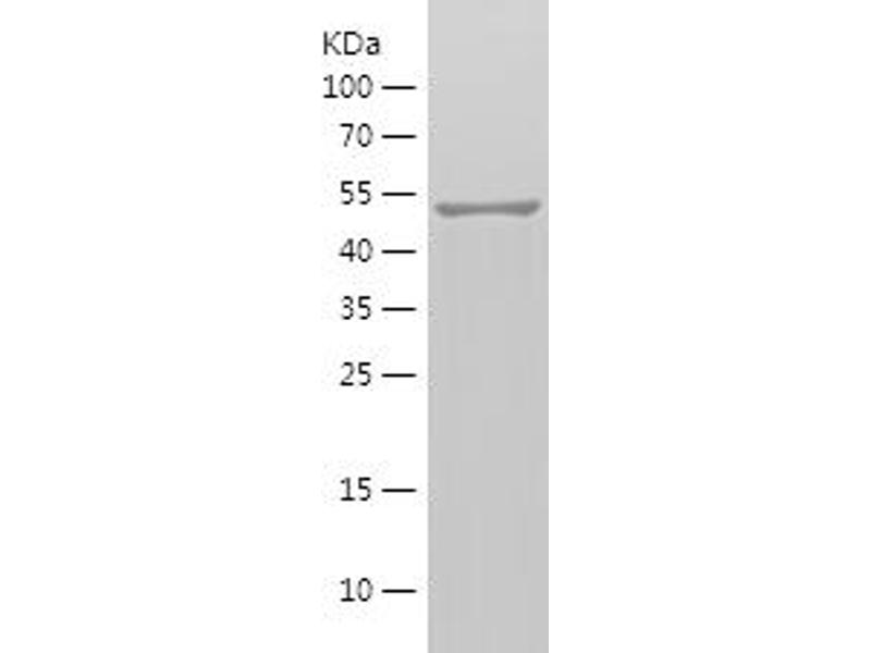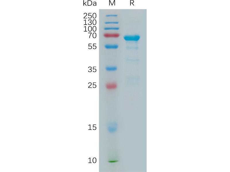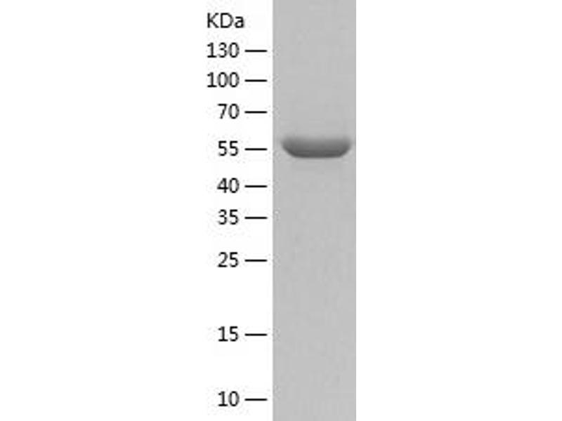 The purity of the protein is greater than 85 % as determined by SDS-PAGE and Coomassie blue staining.