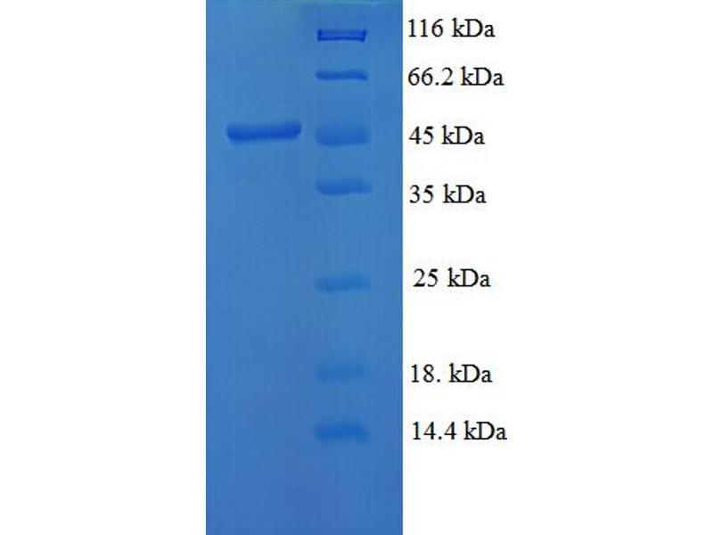 > 95 % , as determined by Coomassie stained SDS-PAGE.