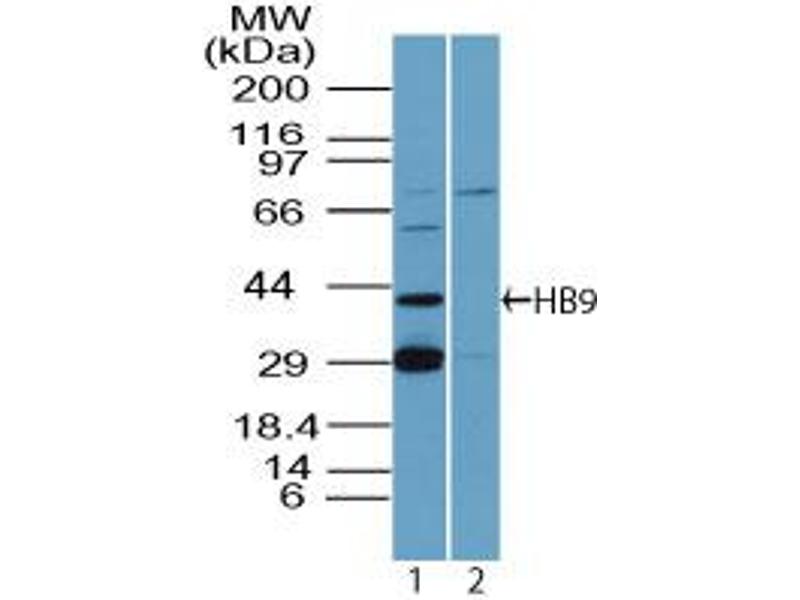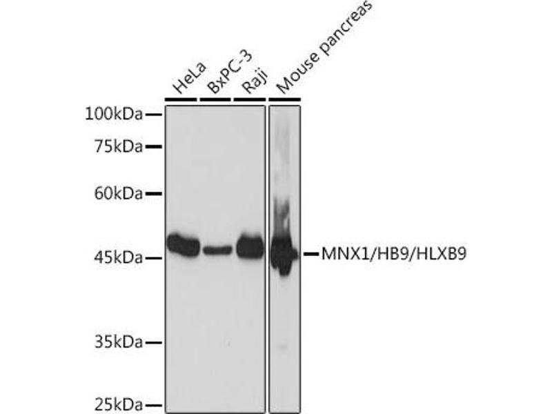 : "Persistent expression of Hlxb9 in the pancreatic epithelium impairs pancreatic development." in: Developmental biology, Vol. 240, Issue 1, pp. 247-53, (2002) (PubMed).Aliase für MNX1 Antikörper