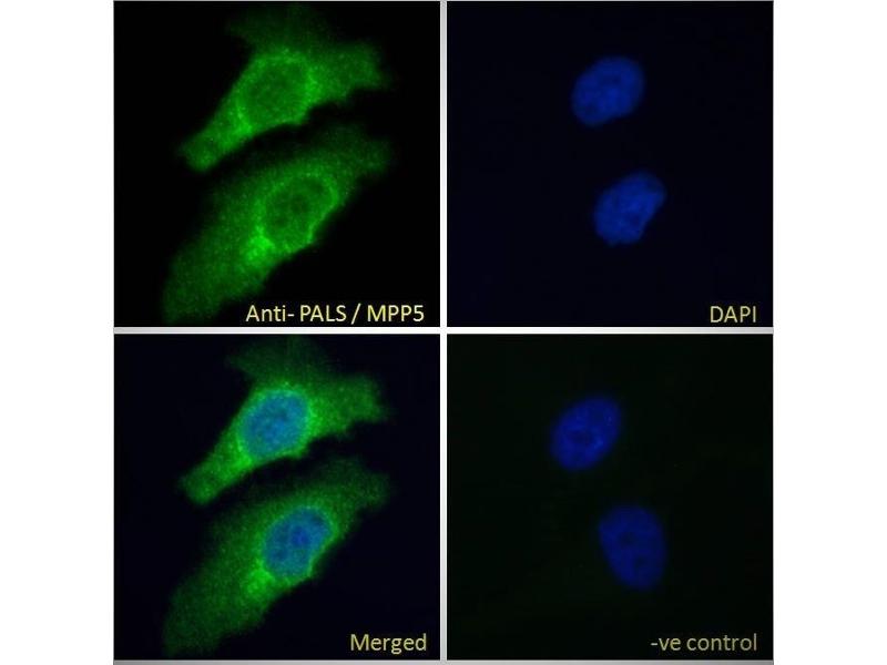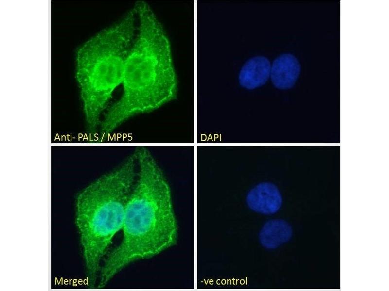 : "The multi-PDZ domain protein-1 (MUPP-1) expression regulates cellular levels of the PALS-1/PATJ polarity complex." in: Experimental cell research, Vol. 319, Issue 17, pp. 2514-25, (2013) (PubMed).: "Immunofluorescence and fluorescent-protein tagging show high correlation for protein localization in mammalian cells." in: Nature methods, Vol. 10, Issue 4, pp. 315-23, (2013) (PubMed).