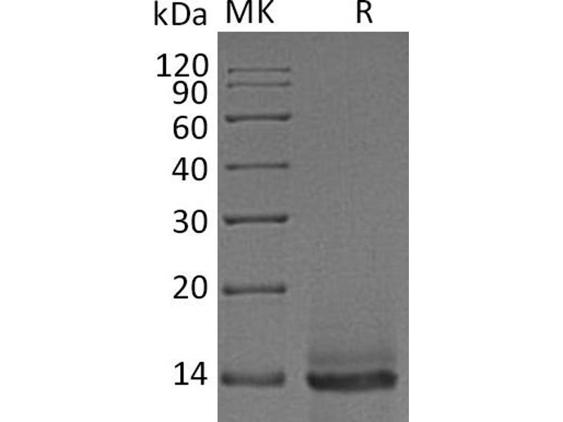 The purity of the protein is greater than 95 % as determined by SDS-PAGE and Coomassie blue staining.