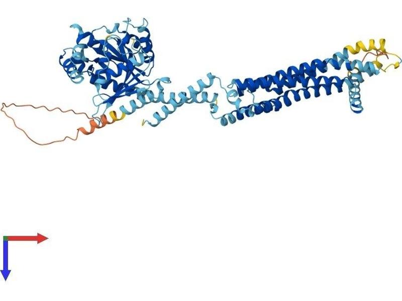 In mouse, the interferon-inducible Mx protein is responsible for a specific antiviral state against influenza virus infection. The protein encoded by this gene is similar to the mouse protein as determined by its antigenic relatedness, induction conditions, physicochemical properties, and amino acid analysis. This cytoplasmic protein is a member of both the dynamin family and the family of large GTPases. Two transcript variants encoding the same protein have been found for this gene. [provided by RefSeq, Jan 2009].