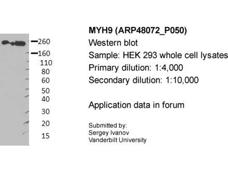 MYH9 Reaktivität: Human WB, IHC, IP, ICC Wirt: Kaninchen Polyclonal unconjugated