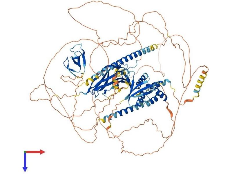 The protein encoded by this gene was originally identified as an ovarian tumor antigen monitored in ovarian cancer. The encoded protein contains a B-box/coiled coil motif, which is present in many genes with transformation potential, but the function of this protein is unknown. This gene is located on a region of chromosome 17q21.1 that is in close proximity to tumor suppressor gene BRCA1. Three alternatively spliced variants encoding the same protein have been identified for this gene. [provided by RefSeq, Jul 2008].