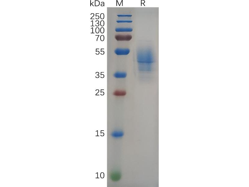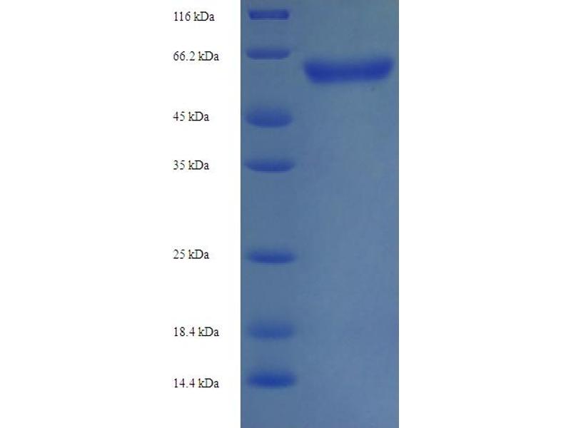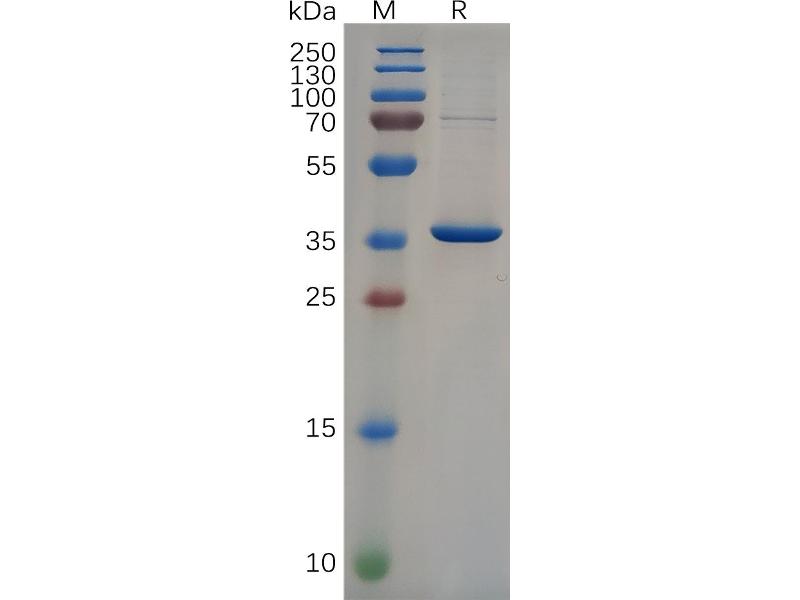 The purity of the protein is greater than 95 % as determined by SDS-PAGE and Coomassie blue staining.