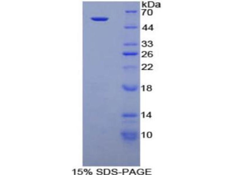 The purity of the protein is greater than 85 % as determined by SDS-PAGE and Coomassie blue staining.
