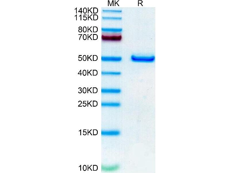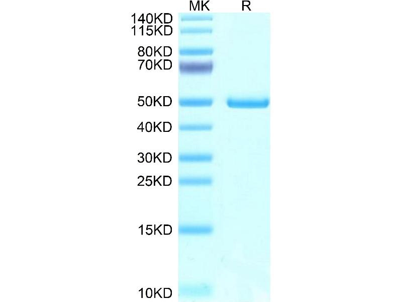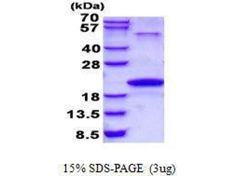 The purity of the protein is greater than 95 % as determined by SDS-PAGE and Coomassie blue staining.