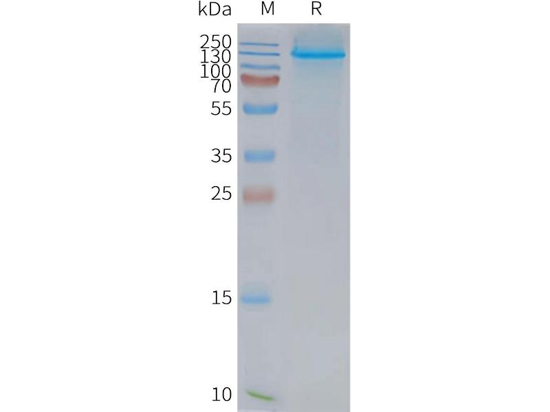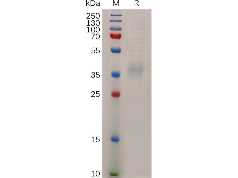 The purity of the protein is greater than 85 % as determined by SDS-PAGE and Coomassie blue staining.