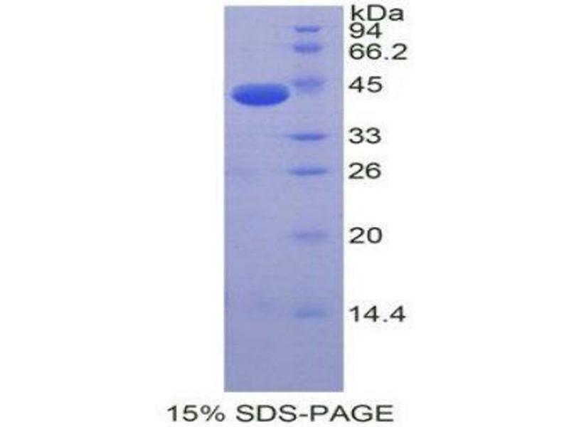 The purity of the protein is greater than 95 % as determined by SDS-PAGE and Coomassie blue staining.