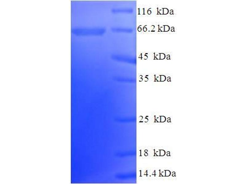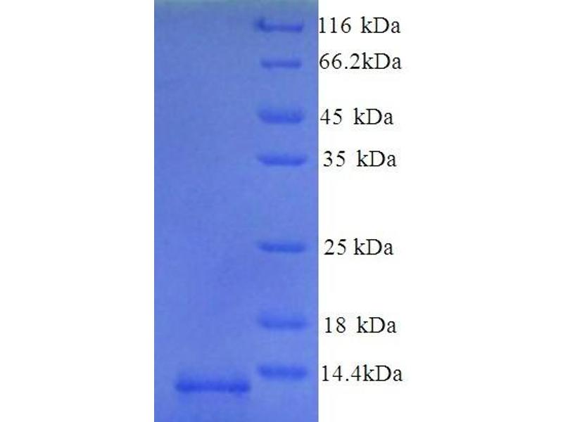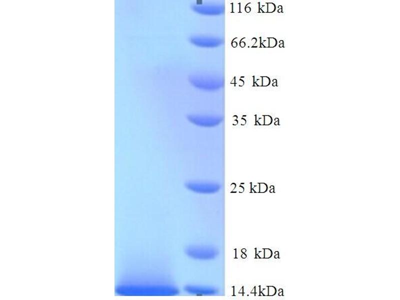 The purity of the protein is greater than 85 % as determined by SDS-PAGE and Coomassie blue staining.