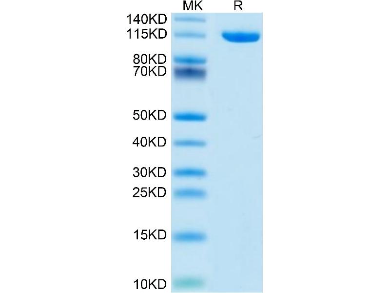 The purity of the protein is greater than 85 % as determined by SDS-PAGE and Coomassie blue staining.
