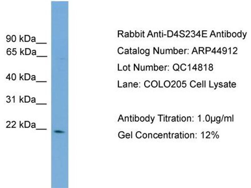 : "Ctip2-, Satb2-, Prox1-, and GAD65-Expressing Neurons in Rat Cultures: Preponderance of Single- and Double-Positive Cells, and Cell Type-Specific Expression of Neuron-Specific Gene Family Members, ..." in: PLoS ONE, Vol. 10, Issue 10, pp. e0140010, (2015) (PubMed).: "D4S234E, a novel p53-responsive gene, induces apoptosis in response to DNA damage." in: Experimental cell research, Vol. 316, Issue 17, pp. 2849-58, (2010) (PubMed).