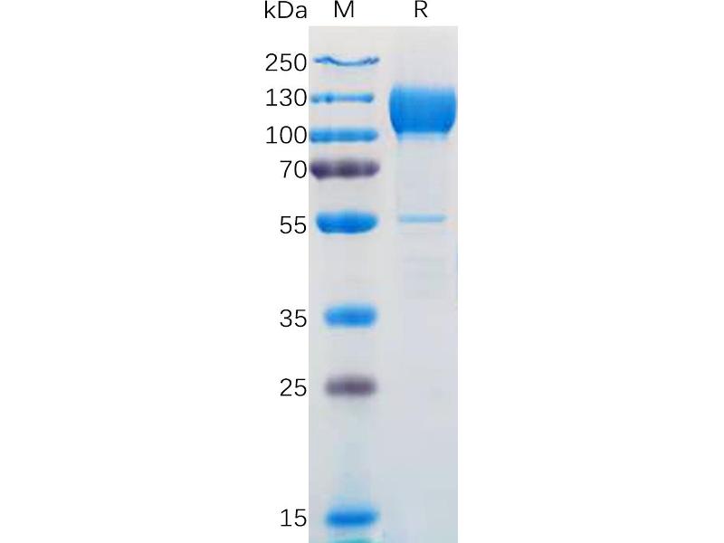 The purity of the protein is greater than 95 % as determined by SDS-PAGE and Coomassie blue staining.