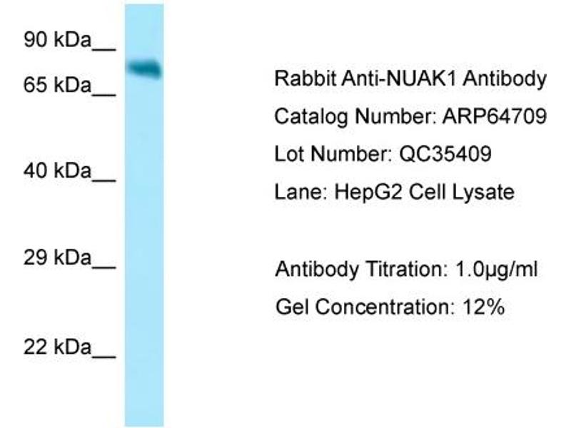 NUAK1 Reaktivität: Human, Maus, Ratte, Rind (Kuh), Hund, Pferd, Meerschweinchen, Kaninchen, Saccharomyces cerevisiae, Zebrafisch (Danio rerio) WB Wirt: Kaninchen Polyclonal unconjugated