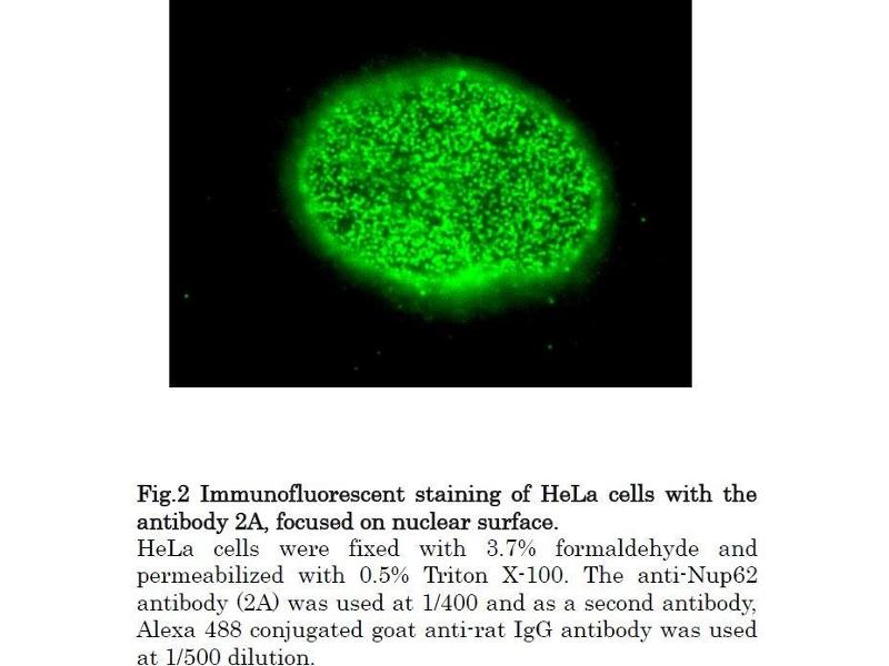 : "Functional analysis of nuclear pore complex protein Nup62/p62 using monoclonal antibodies." in: Hybridoma (2005), Vol. 25, Issue 2, pp. 51-9, (2006) (PubMed).