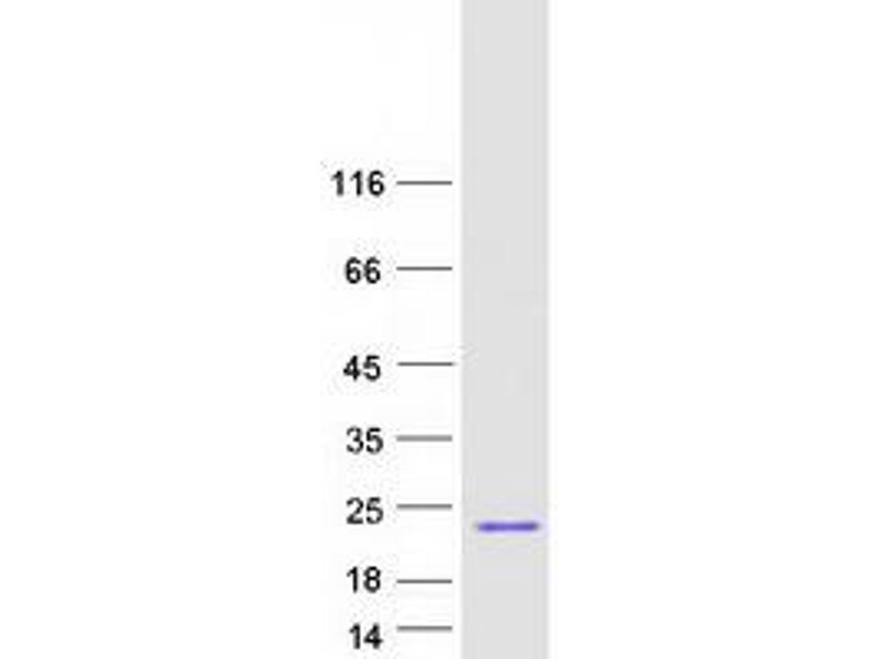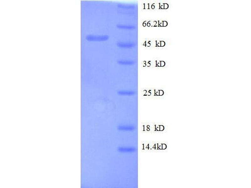 The purity of the protein is greater than 85 % as determined by SDS-PAGE and Coomassie blue staining.