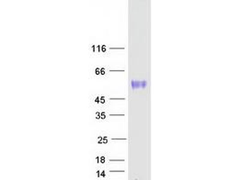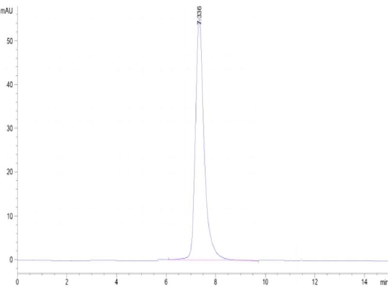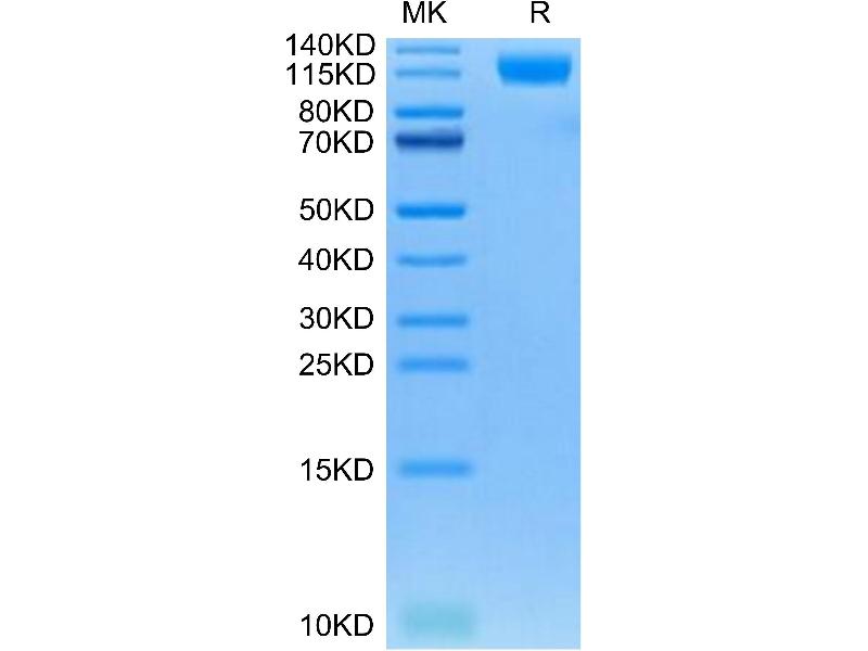 The purity of the protein is greater than 85 % as determined by SDS-PAGE and Coomassie blue staining.
