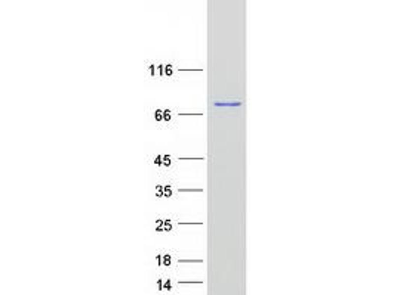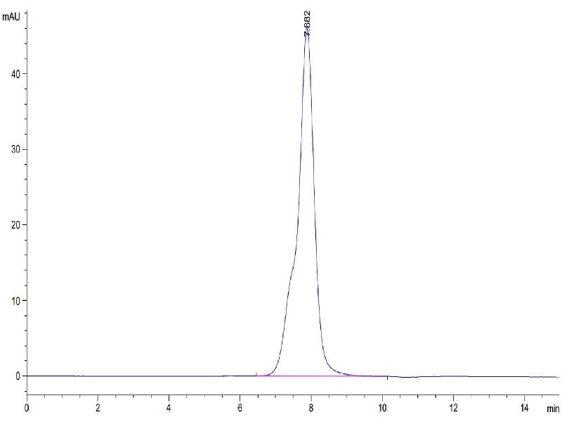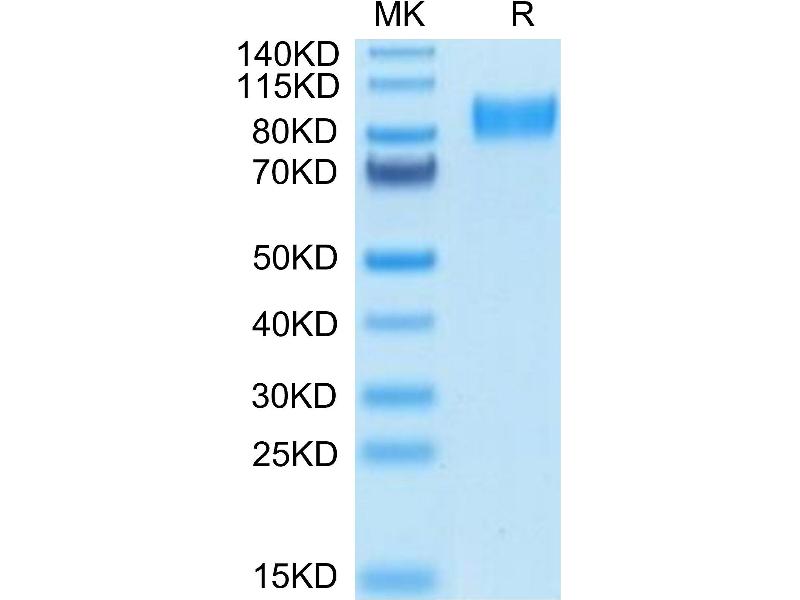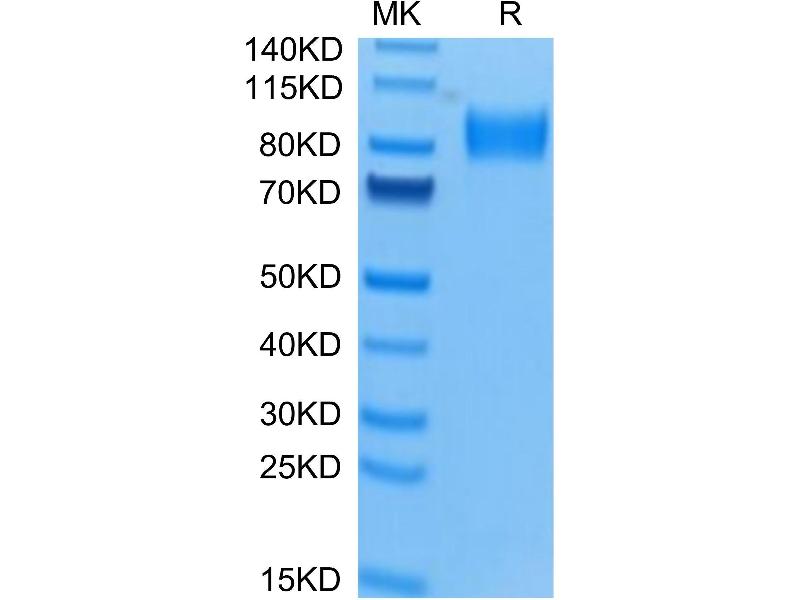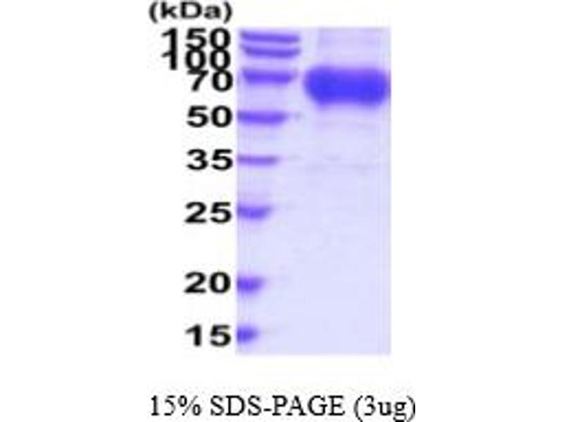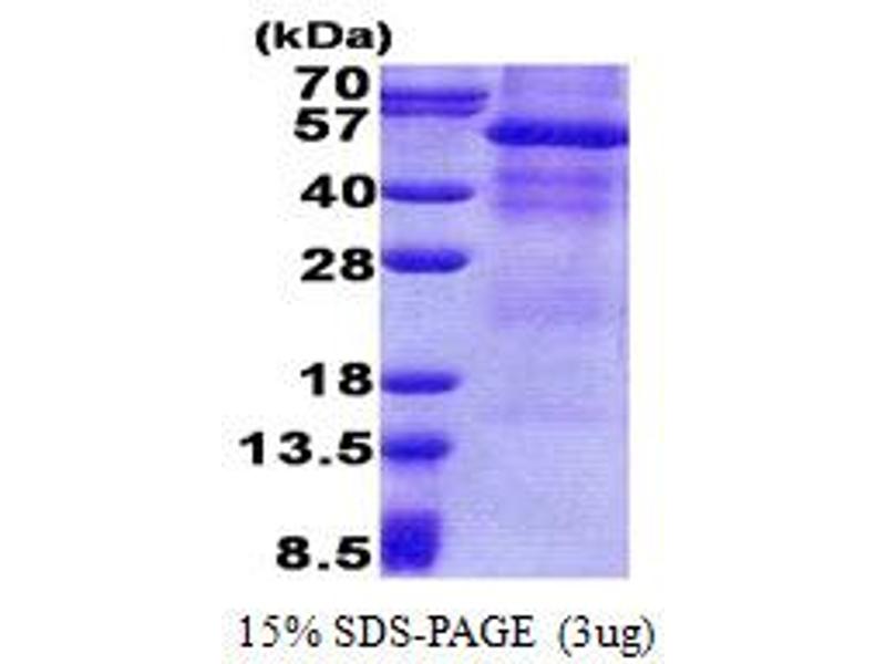 The purity of the protein is greater than 85 % as determined by SDS-PAGE and Coomassie blue staining.