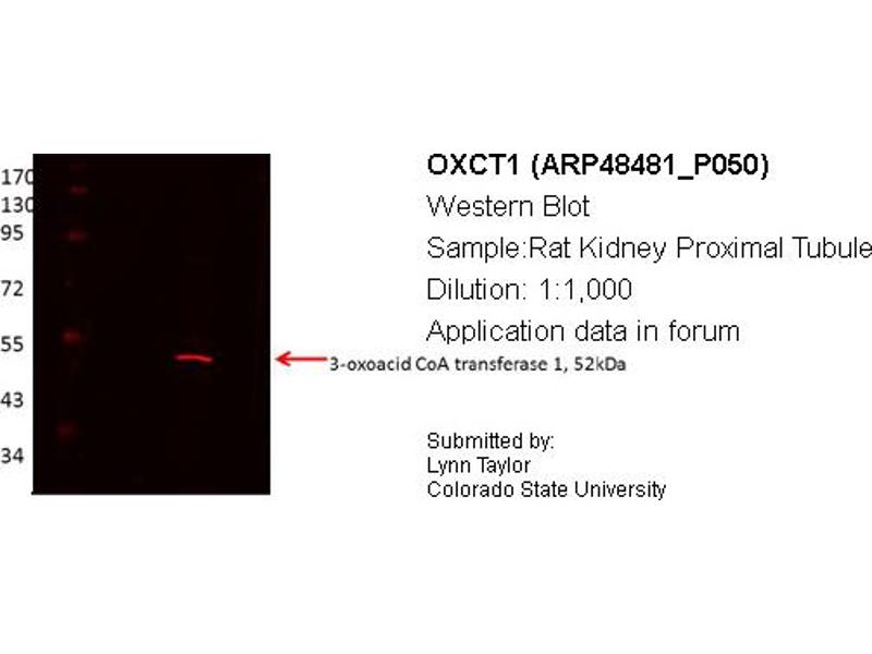 OXCT1 Reaktivität: Human, Maus, Ratte, Rind (Kuh), Kaninchen, Meerschweinchen, Zebrafisch (Danio rerio), Hund, Pferd, Schwein WB Wirt: Kaninchen Polyclonal unconjugated