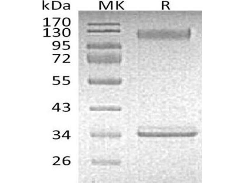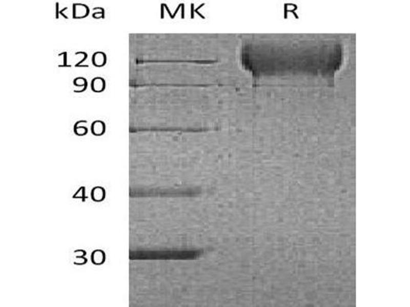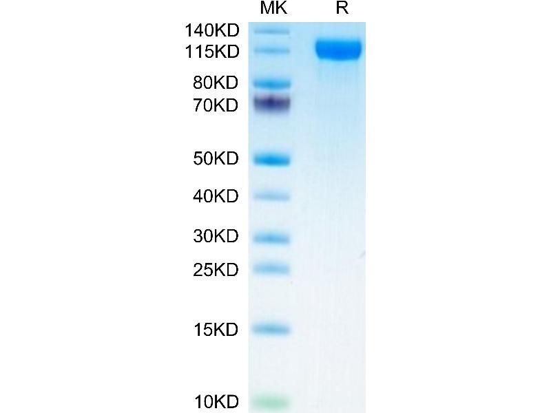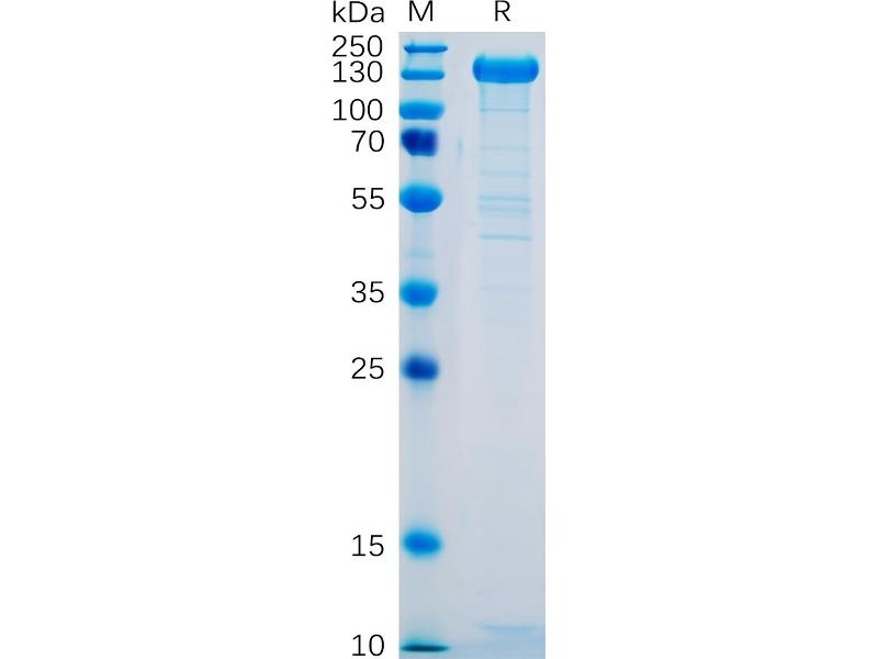 The purity of the protein is greater than 95 % as determined by SDS-PAGE and Coomassie blue staining.