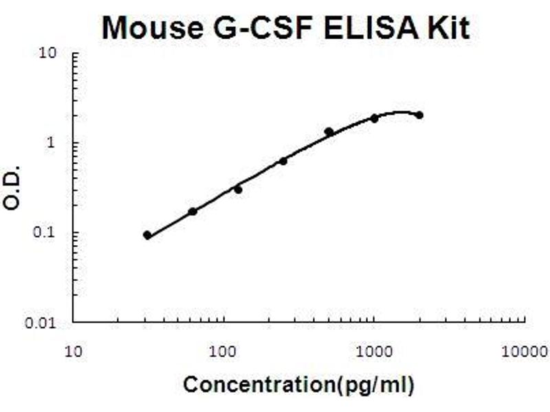 Background: Granulocyte colony-stimulating factor(G-CSF) is a member of the CSF family of hormone-like glycoprotein that regulates hematopoietic cell proliferation and differentiation, and it almost exclusively stimulates the colony formation of granulocytes from committed precursor cells in semi-solid agar culture. G-CSF is also termed colony stimulating factor-3, and a single gene of which codes for a 177 or 180 amino acid mature protein of molecular weight 19,600. Functionally, it specifically stimulates the proliferation and differentiation of the progenitor cells for granulocytes. The effect of G-CSF on myeloid leukemias is unique among colony stimulating factors in driving the leukemic cells from a self-renewing malignant state to a mature differentiated phenotype with the concomitant loss of tumorigenicity. Besides, it also prevents cardiac remodeling after myocardial infarction by activating the Jak-Stat pathway in cardiomyocytes. The recombinant form of hG-CSF is capable of supporting neutrophil proliferation in a CFU-GM assay as well as early erythroid colonies and mixed colony formation. Human gene coding for G-CSF is assigned to the q21-q22 region of chromosome 17.3 The standard product used in this kit is recombinant Mouse G-csf, consisting of 179 amino acids with the molecular mass of 19KDa.