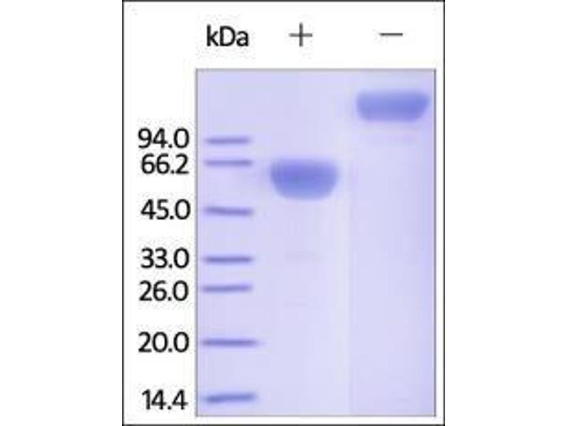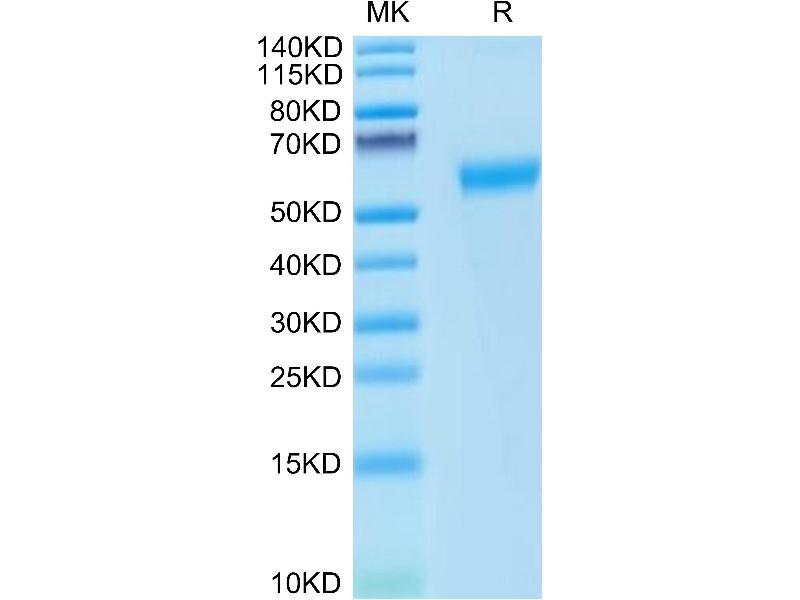 The purity of the protein is greater than 90 % as determined by SDS-PAGE and Coomassie blue staining.