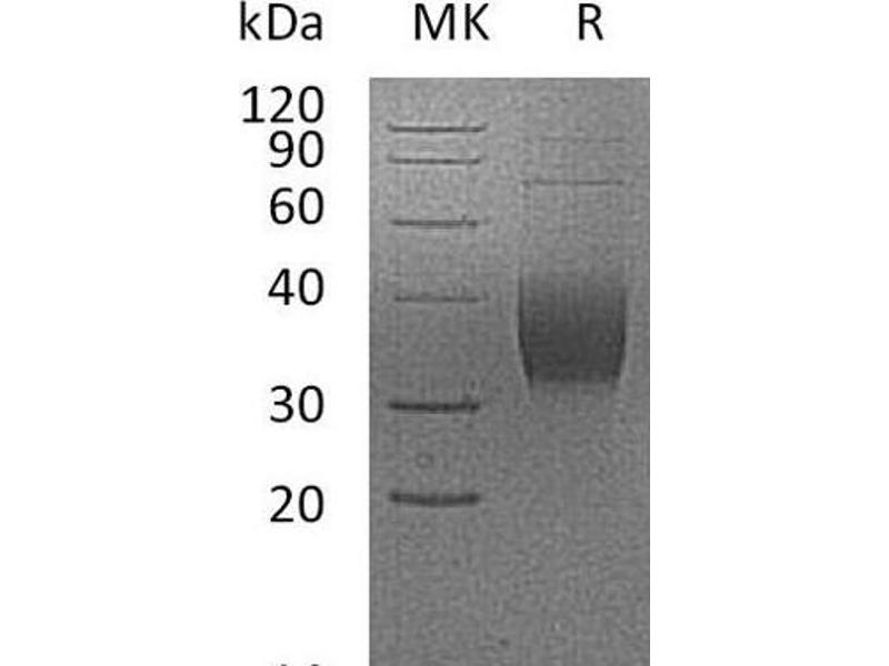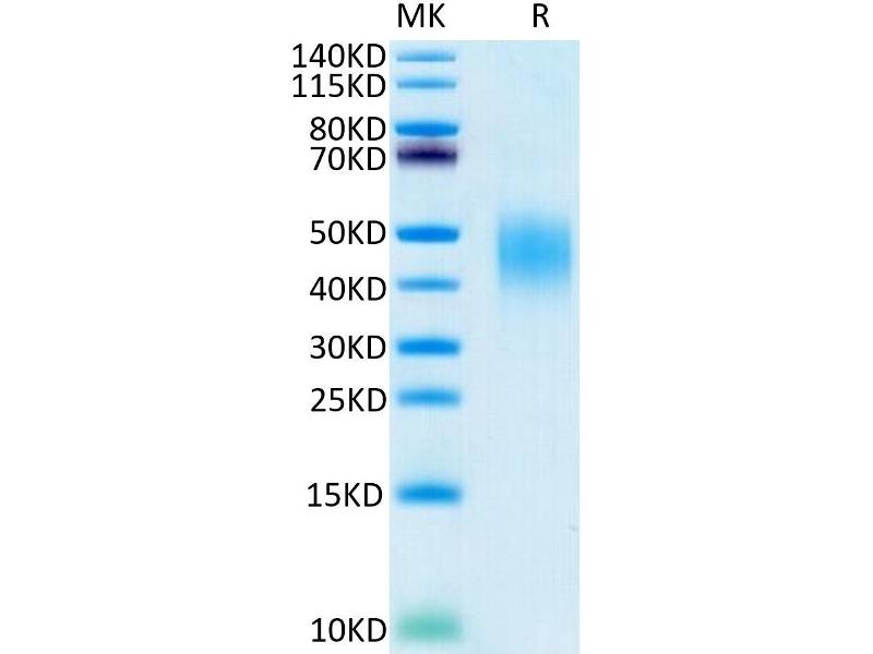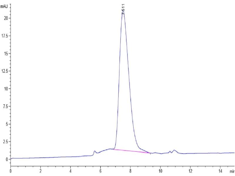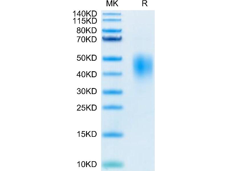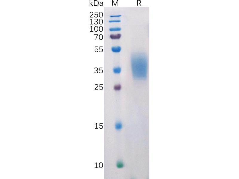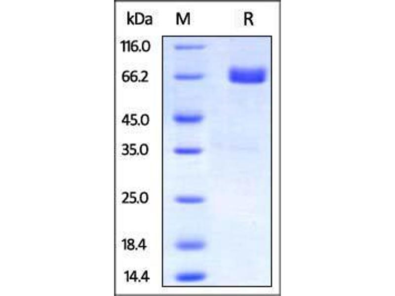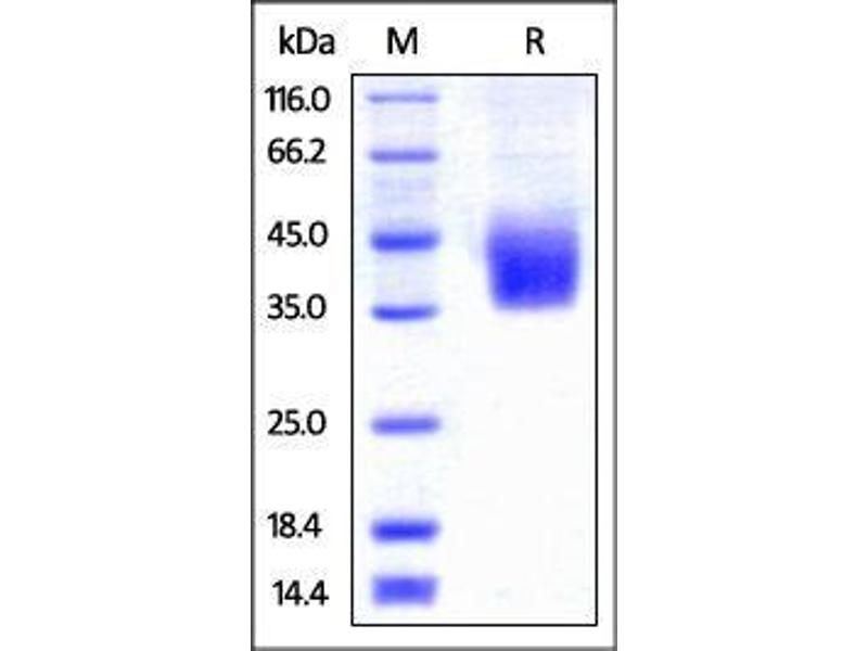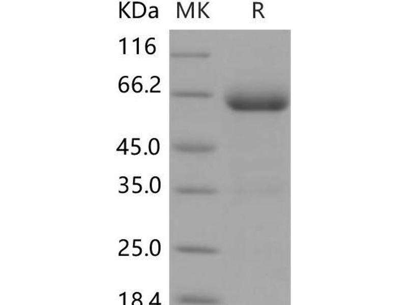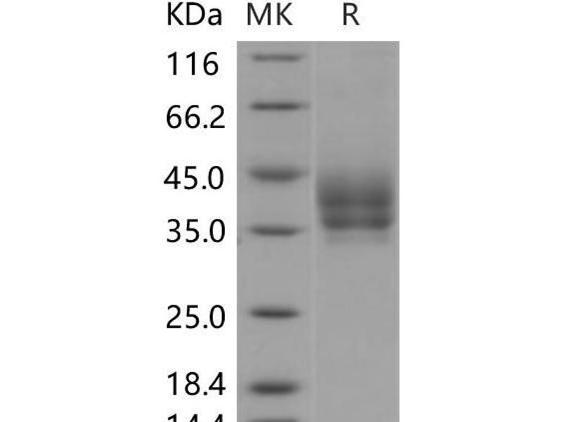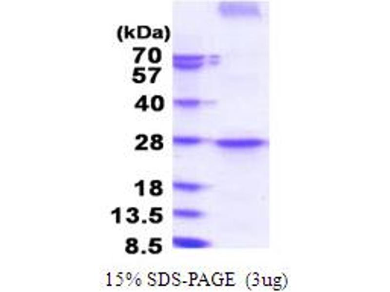 The purity of the protein is greater than 95 % as determined by SDS-PAGE and Coomassie blue staining.