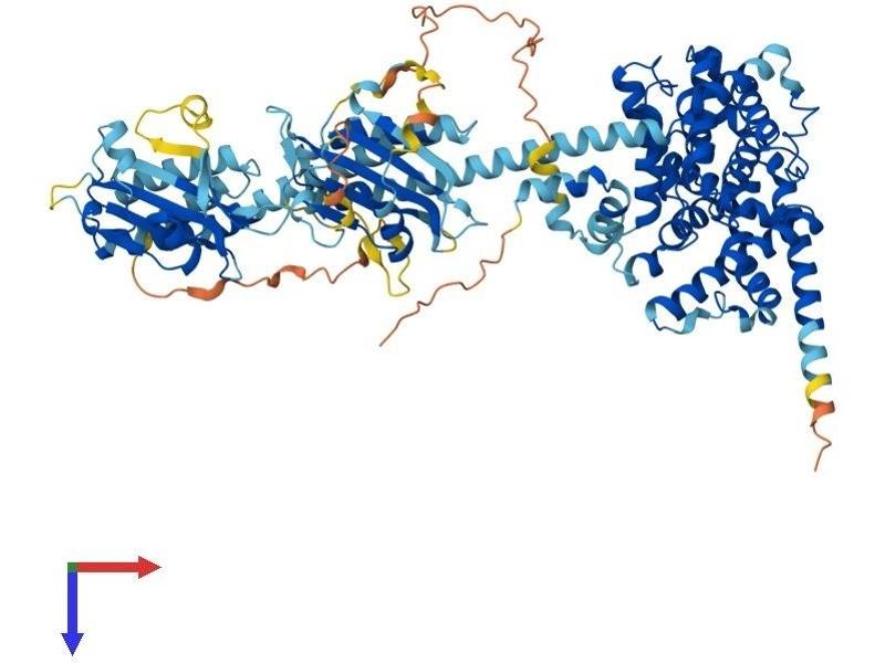 This gene encodes a cGMP-binding, cGMP-specific phosphodiesterase, a member of the cyclic nucleotide phosphodiesterase family. This phosphodiesterase specifically hydrolyzes cGMP to 5'-GMP. It is involved in the regulation of intracellular concentrations of cyclic nucleotides and is important for smooth muscle relaxation in the cardiovascular system. Alternative splicing of this gene results in three transcript variants encoding distinct isoforms. [provided by RefSeq, Jul 2008].