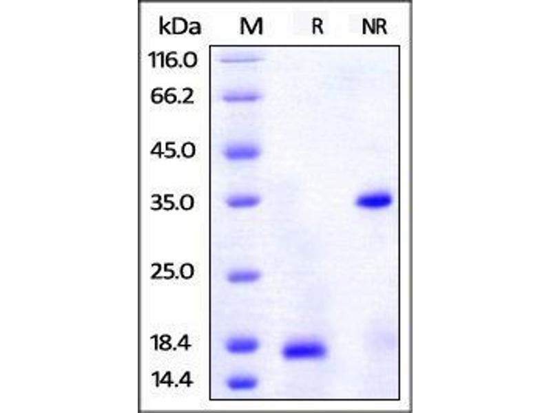 The purity of the protein is greater than 95 % as determined by SDS-PAGE and Coomassie blue staining.