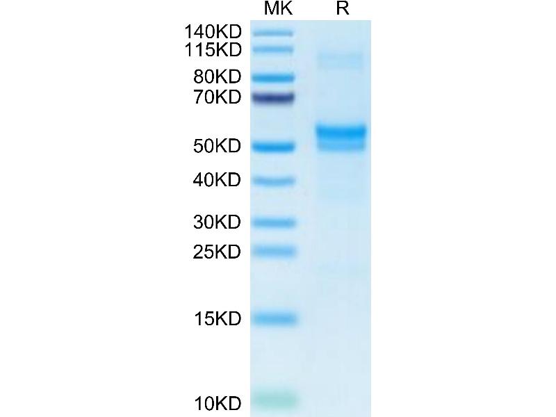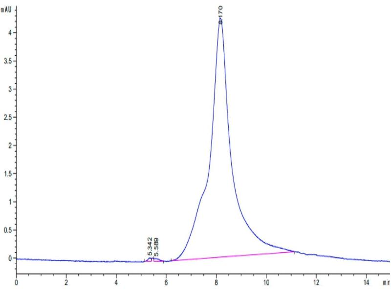 The purity of the protein is greater than 95 % as determined by SDS-PAGE and Coomassie blue staining.