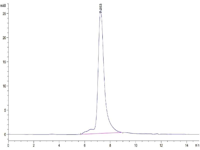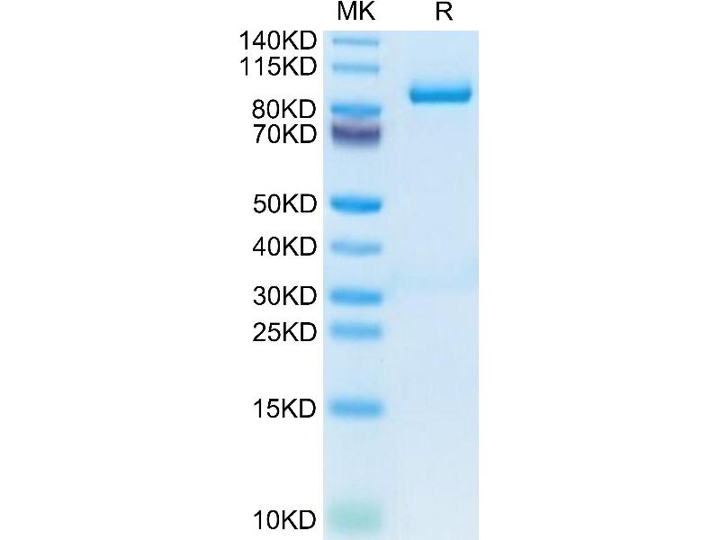 The purity of the protein is greater than 85 % as determined by SDS-PAGE and Coomassie blue staining.