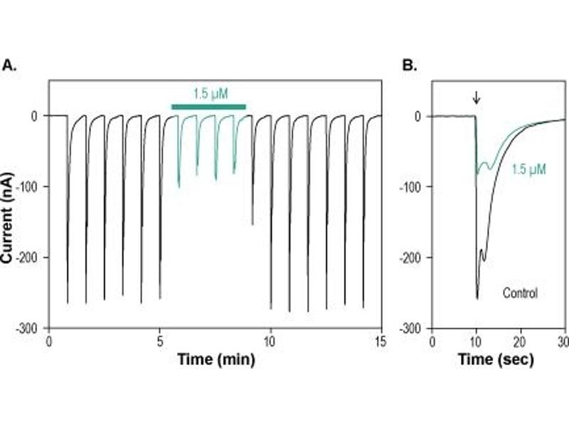 α-CTx ImI,α-Conotoxin ImI is a 12 amino acid peptidyl toxin isolated from Conus Imperialis venom1, which blocks mammalian neuronal nAChRs located on postsynaptic membranes. This toxin inhibits mammalian neuronal nAChRs (α3/β2 > α7 > α3/β4) in a voltage-independent manner and has no effect on nAChRs composed of α2/β2, α3/β2, α4/β2, α2/β4, α3/β4, or α4/β4 subunits1,2.