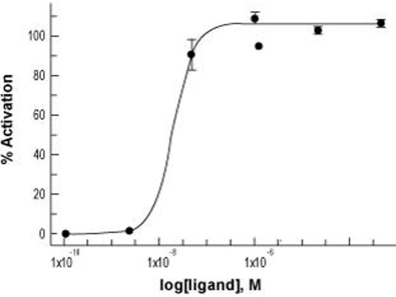 Centrifuge the vial (10,000 x g for 5 minutes) before adding solvent to spin down all the powder to the bottom of the vial. The lyophilized product may be difficult to visualize. Add solvent directly to the centrifuged vial. Gently tap, tilt, and roll the vial to aid dissolution. Avoid vigorous vortexing, light vortexing for up to 3 seconds is acceptable if needed. The product is soluble in pure water at high micromolar concentrations (100 μM - 1 mM). For long-term storage in solution, we recommend preparing a stock solution by dissolving the product in double-distilled water (ddH2O) at a concentration between 100-1000x of the final working concentration. Divide the stock solution into small aliquots and store at -20 °C. Before use, thaw the relevant vial(s) and dilute to the desired working concentration in your working buffer. Centrifuge all product preparations before use. It is recommended to prepare fresh solutions in working buffers just before use. Avoid multiple freeze-thaw cycles to maintain biological activity.