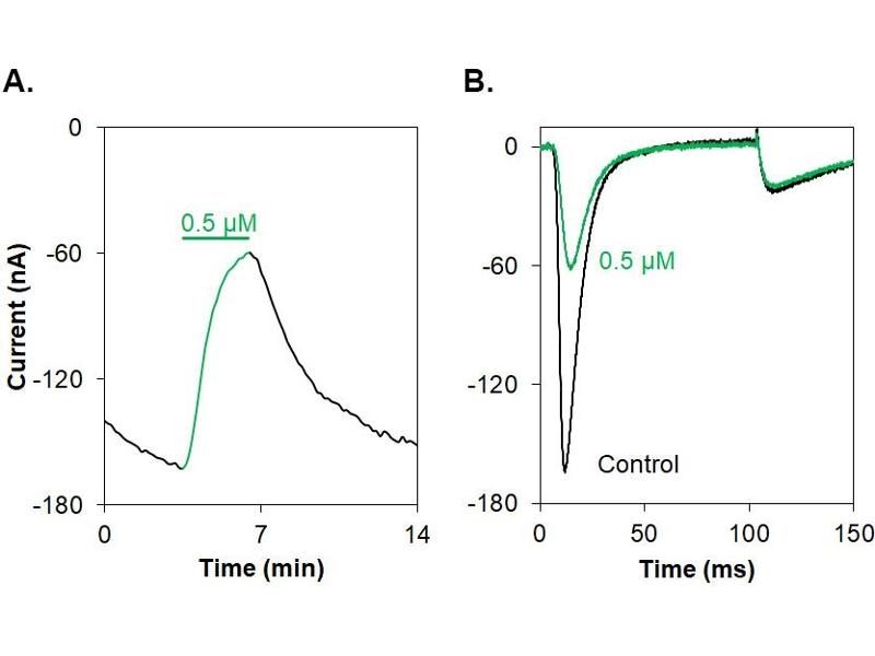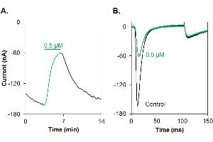 M-TRTx-Gr1a, M-theraphotoxin-Gr1a, GsMTx4,GsMTx-4 is a 34 amino acid peptidyl toxin originally isolated from the Grammostola rosea (Chilean rose) tarantula venom and belongs to the huwentoxin-1 family1. This toxin inhibits different channels and in addition has antimicrobial activity. It blocks cation-selective mechanosensitive ion channels (strech-activated channels, SACs), without having an effect on whole-cell voltage-sensitive currents1. In addition, it inhibits atrial fibrillation2 as well as the membrane motor of outer hair cells3 at low doses. A medium toxicity on a large spectra of voltage-gated Na+ channels, namely NaV1.1, NaV1.2, NaV1.3, NaV1.4, NaV1.5, NaV1.6 and NaV1.7 was reported. GsMTx-4 also inhibits K+ channels KV11.1 and KV11.2, whereas it does not inhibit K+ channels KV1.1 (IC50 > 85 μM), KV1.4 (IC50 > 85 μM) and KV11.3 (IC50 = 53 μM)4. GsMTx-4 was also found to inhibit both TRPC1 and TRPC6 channels5,6, as well as Piezo1, the mechanosensitive channel7. Antimicrobial activity is shown against several Gram-positive and Gram-negative bacteria as well8.