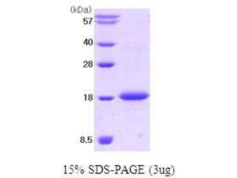 The cytokine Macrophage migration inhibitory factor (MIF) has been identified to be secreted by the pituitary gland and the monocyte/macrophage and to play an important role in endotoxic shock. MIF has the unique property of being released from macrophages and T cells in response to physiological concentrations of glucocorticoids. The secretion of MIF is tightly regulated and decreases at high, anti-inflammatory steroid concentration. Recombinant human MIF was expressed in E. coli and purified by conventional chromatography techniques. Alternative Names: Clo protein, MMIF protein, Stem cell factor protein, Steel protein, contrasted protein, Mgf protein, Kitlg protein, Sl protein, glycosylation inhibiting factor (GIF) protein, Gb protein, Con protein, Kitl protein, GLIF protein, Stem cell factor, SCF protein, SLF protein, mouse SCF protein, SF protein